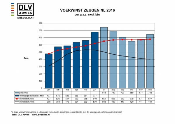 Het kleinere verschil tussen opbrengstprijs en kostprijs komt ook doordat de voerprijzen het afgelopen jaar verder zijn gedaald zijn door de verbetering van de technische resultaten. De kostprijs van biggen (incl. BTW) ligt nu weer onder de 55 euro. De kostprijs van vlees is in een jaar tijd ruim 4% gedaald. Deze lichte daling is vrijwel geheel toe te schrijven aan lagere voerprijzen.