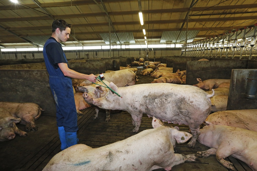 Wil je als zeugenhouder met grote zekerheid weten of er een PRRS-veldvirus op je bedrijf aanwezig is, dan moet je investeren in monitoring. “Met tweemaal per jaar een paar monsters per diergroep nemen ben je er niet, dan kun je het veldvirus toch missen”, weet Mark Steentjes uit ervaring. Voorjaar 2018 kampte hij met een PRRS-uitbraak. Toen zijn dierenarts Tim van Sprang dit veldvirus ging vergelijken met het veldvirus dat in 2015 was binnen gekomen, bleek dit hetzelfde. Het virus was dus drie jaar sluimerend aanwezig gebleven. Om zekerheid te krijgen is Steentjes sindsdien overgestapt op een intensieve monitoring (45 monsters) van zijn biggen. Tegelijk heeft hij zowel de externe als interne biosecurity nog eens flink aangescherpt. Het afleveren van slachtzeugen en slachtbiggen gaat nu gecombineerd met een schone wagen. Er komt een tweede kadaverkoeling zo ver mogelijk van het bedrijf af waar Rendac mag laden. De scheiding tussen de verschillende diergroepen is nog strikter. De biggenafdeling heeft een eigen hygiënesluis en ook de scheiding met de zelf aangefokte opfokzeugen is nu heel strikt. Resultaat is dat bij de laatste monsternames geen PRRS-veldvirus meer is gevonden.