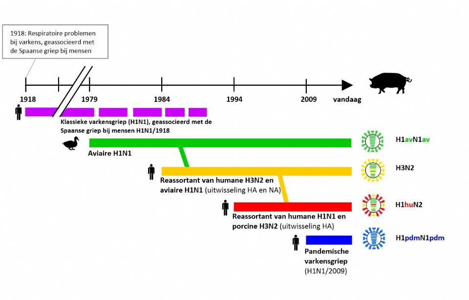De laatste decennia is er een aantal grieptypes van belang bij varkens. Deze types zijn gelukkig redelijk stabiel gebleken. Nadat er in de jaren zeventig en tachtig H1N1 (van watervogels) en H3N2 (van mensen) rondging bij varkens, is daar in het begin van deze eeuw nog H1N2 – herschikking van grieptypes van mensen en varkens – bij gekomen. Daarna was het een aantal jaren rustig aan het front.