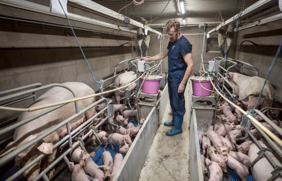 Rotink vindt een goede biestvoorziening ook belangrijk. 'Daarom heb ik met mijn broer die de TN70-gelten opfokt, afgesproken dat we naast aanleg voor groei en voerconversie goed letten op moedereigenschappen en aantal spenen. Doel is dat elke big een speen heeft. We hoeven niet meer levend geboren biggen dan het aantal mooi geplaatste spenen bij de zeug. Natuurlijk lukt het niet 100 procent, maar dan maken we met de praktische melkbijvoerinstallatie ALFF een groep van vier zeugen met negentig biggen. Dat gaat prima.'