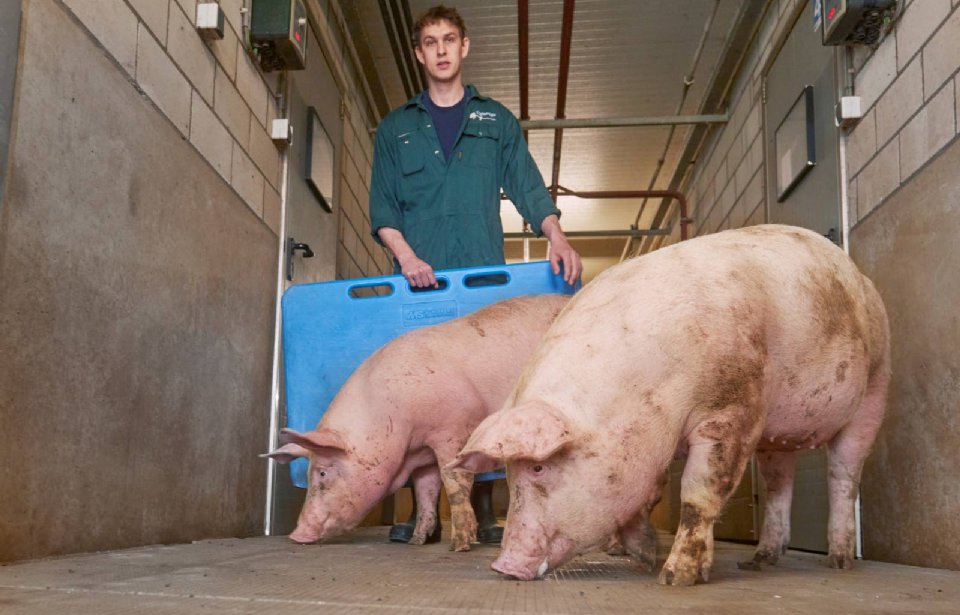 Aan het begin van de ruim 100 meter lange oprit naar fokbedrijf Tojapigs bevindt zich de koelkelder. Voor het hekwerk met borden die wijzen op gedragsregels ligt de parkeerplaats. Stallen ongemerkt betreden is uitgesloten: de deuren gaan alleen op met een pasje of na het intikken van een toegangscode.