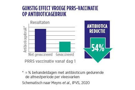 Referentie: 1. Meyns T., Vanderzeypen A., Verhaegen A., Vanaken H., Fockedey M., Dewulf J., PRRS MLV vaccination of piglets reduces antibiotic use in fattening pigs, 2020, IPVS