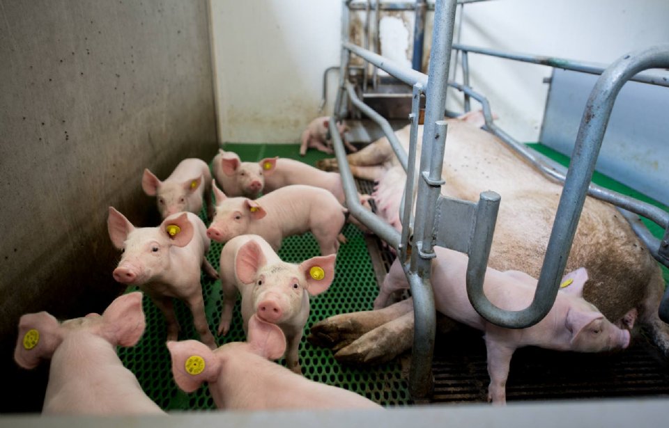 Na de middag gaat Nissen met de vaccinatiespuit aan de slag. Hij zet de biggen met een schotje in de hoek van het kraamhok vast. Een voor een tilt hij de biggen eruit en drukt het scherpe naaldje door de huid in de nekspier. Per toom gebruikt hij een nieuwe naald.