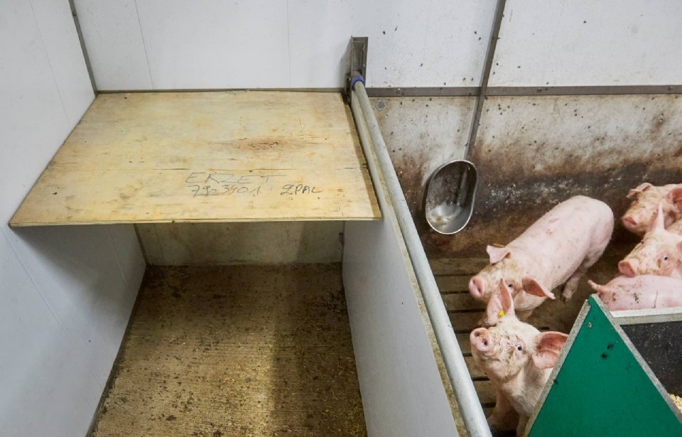 Dat werd gewijzigd naar een curve van 26 graden bij opleg naar 20,5 graden na zes weken. Het ventilatieniveau daalde hierdoor flink. Dat loste nog niet alles op. In het achterste hok in de afdeling kwam nog steeds meer verse lucht binnen dan in het voorste hok. Eerst is de temperatuurvoeler verplaatst en daarna kwam er nog een plank achterin de voergang net onder de hokafscheiding.