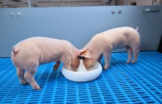 In het kraamhok is het gedragsverschil tussen Duroc- en TN Tempo-biggen al merkbaar. ‘Duroc-biggen zijn nieuwsgieriger en onderzoekender’, ziet Groot Wassink. ‘Ze vinden de bijvoeding daardoor eerder en gaan er ook eerder van eten. Daar moet je rekening mee houden door ervoor te zorgen dat ze ook voldoende en vers voer kunnen opnemen. We zijn overigens niet eerder begonnen met bijvoeren van melk. Dat doen we toch al vanaf dag twee. Door gebruik te maken van de nieuwsgierigheid van de biggen kun je de vroege opname van voer stimuleren.’