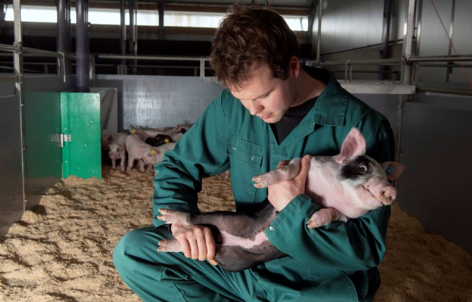 Innovatie- en kenniscentrum VKON voert in de stal gedragsonderzoek uit. ‘Want als sector zullen we naar het houden van varkens met lange staarten toe gaan. Samen met VKON kijken we waar de knelpunten liggen. Je moet bij de gespeende biggen beginnen met de aanpak en misschien al in het kraamhok. De verwachting is dat het moet gaan lukken.’
