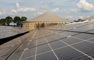 'Op jaarbasis produceren de zonnepanelen en windturbines 380.00 kilowatt. Ons verbruik is 320.000 kilowatt. Het overschot leveren we terug aan het net. Dat is hier nog geen probleem.'