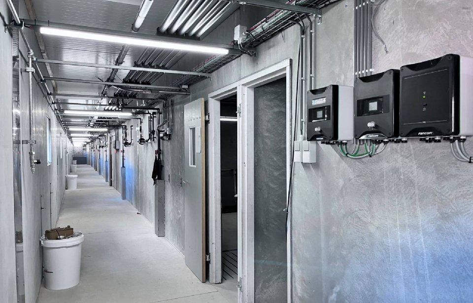 Rondneuzen in moderne vleesvarkensstal met één BLK-ster