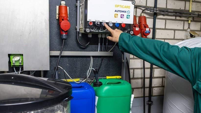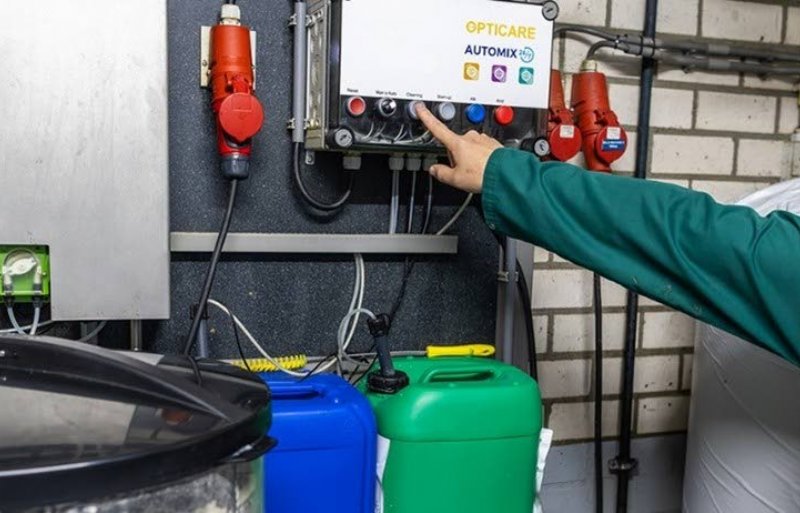 Om biggen optimaal van melkproducten te laten profiteren, moet het voer altijd vers zijn. Een schoon automatisch voersysteem is daarbij cruciaal. Met Automix kun je met één druk op de knop een driedubbele reiniging in werking zetten. De leidingen worden dan eerst met water doorgespoeld en vervolgens met loog en desinfectiemiddel. Hierdoor wordt er altijd op de juiste manier gereinigd. Doordat het systeem daarnaast telkens kleine porties aanmaakt, krijgen de biggen altijd verse melk uit de cups.