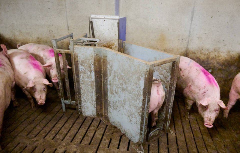 Iedere groep van ongeveer 270 zeugen heeft de beschikking over zes voerstations. Vijf stations had ook gekund, geeft de ondernemer aan. 'Maar er is er nu een extra voor het geval er een keer een storing is. Dan hebben de zeugen altijd nog ruim de tijd om het voer op te nemen.'